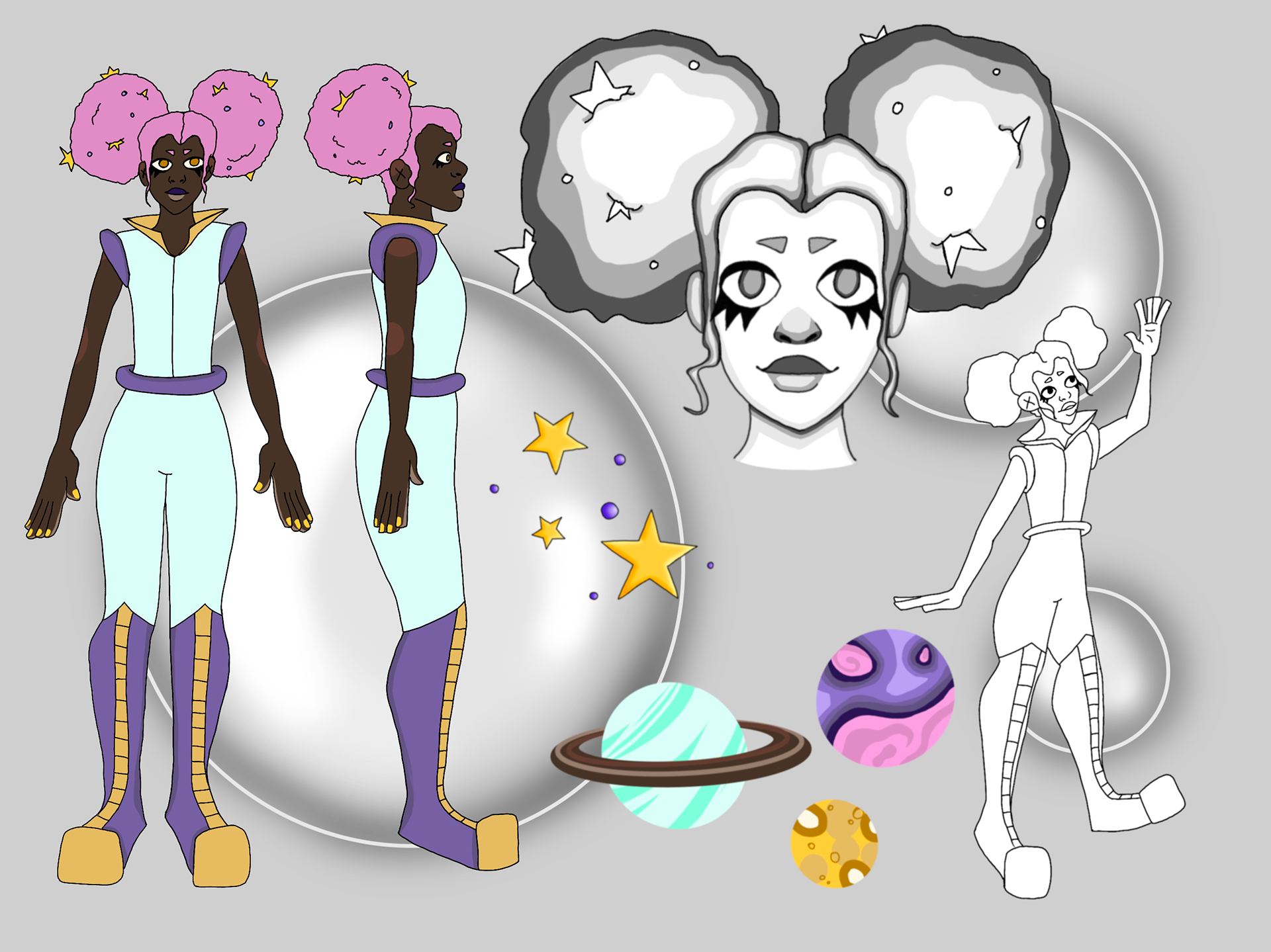 Created for my High School game studio course, I worked with a group to design and develop a rhythm game. All assets and other artwork were made by me. The following pictures show the concept development, character design, gameplay concept art, and compositions including completed assets to demonstrate the game's final look.
